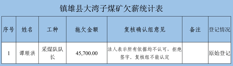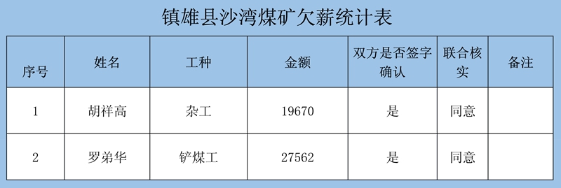 鎮(zhèn)雄縣煤礦整治工作領導小組關于對2020年關閉退出煤礦拖欠農民工工資和工傷未賠付清理結果公示