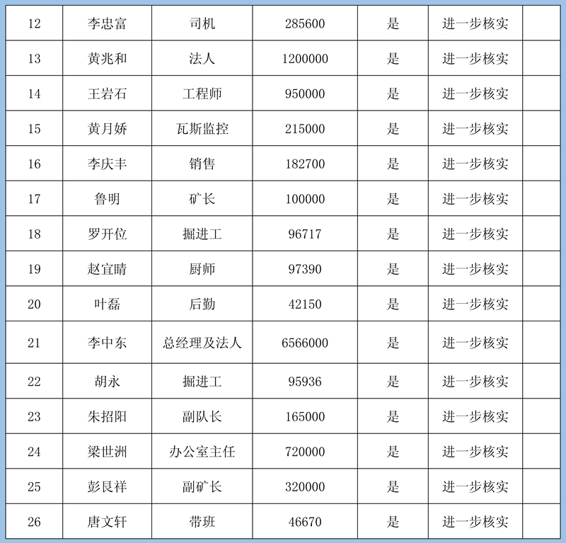 3、其他情況:煤礦未簽字認定11條,煤礦法人未認定,除了復核組認定的3人外,其他無相關佐證材料,無法認定。