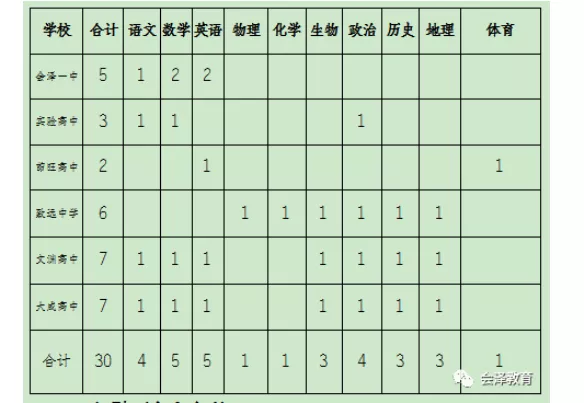 為加強(qiáng)全縣高中學(xué)校教師隊(duì)伍建設(shè),經(jīng)請(qǐng)示縣委、縣政府和曲靖市教育體育局同意,會(huì)澤縣教育體育局決定,面向曲靖師范學(xué)院優(yōu)秀畢業(yè)生,通過公開考試、考核招聘高中教師,F(xiàn)將有關(guān)事項(xiàng)公告如下: