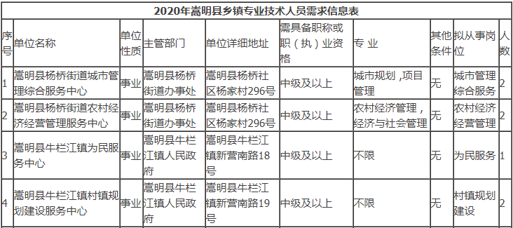嵩明縣人力資源和社會(huì)保障局關(guān)于2020年鄉(xiāng)鎮(zhèn)基層專(zhuān)業(yè)技術(shù)人員需求信息的通告